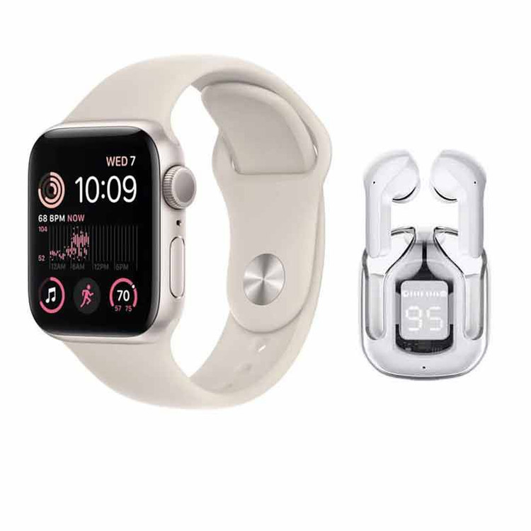 ساعت هوشمند، ایرپاد شیشه ای، شارژر بی سیم، سه عدد بند سیلیکونی و پارچه ای