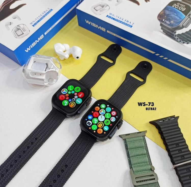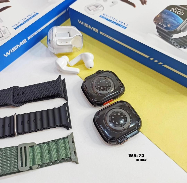 ساعت هوشمند، ایرپاد شیشه ای، شارژر بی سیم، سه عدد بند سیلیکونی و پارچه ای