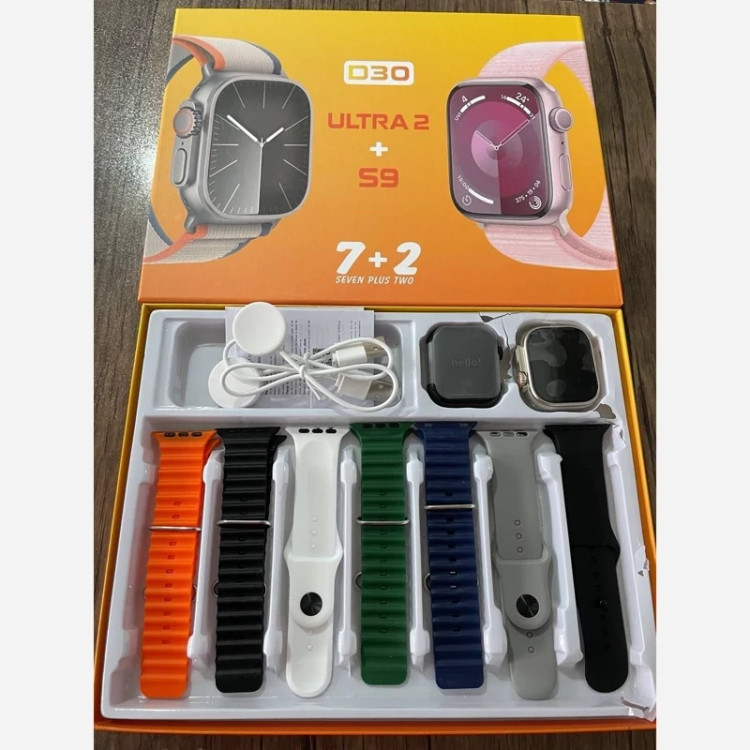2 عدد ساعت هوشمند، 2 عدد شارژر بی سیم، 7 عدد بند سیلیکونی