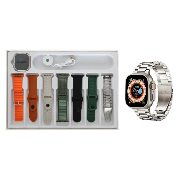 ساعت هوشمند - شارژر بی سیم - 7 عدد بند سیلیکونی، برزنتی و فلزی - کابل شارژ