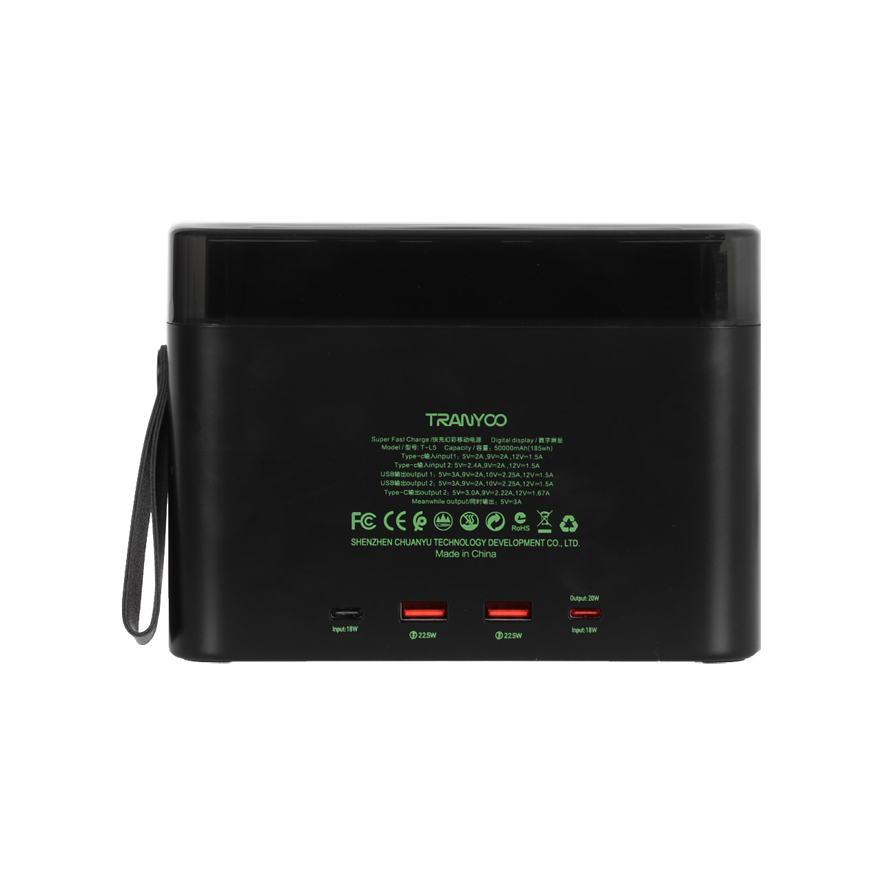 USB : 5V/3A - 9V/2A - 12V/2.25A - 12V/1.5A - Type-C : 5V/3A - 9V/2.22A - 12V/1.67A